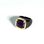 Anello in oro giallo 18Kt con tormalina verde e brillanti che ne esaltano le sfumature naturali. Un gioiello elegante e luminoso, realizzato artigianalmente con cura e precisione.